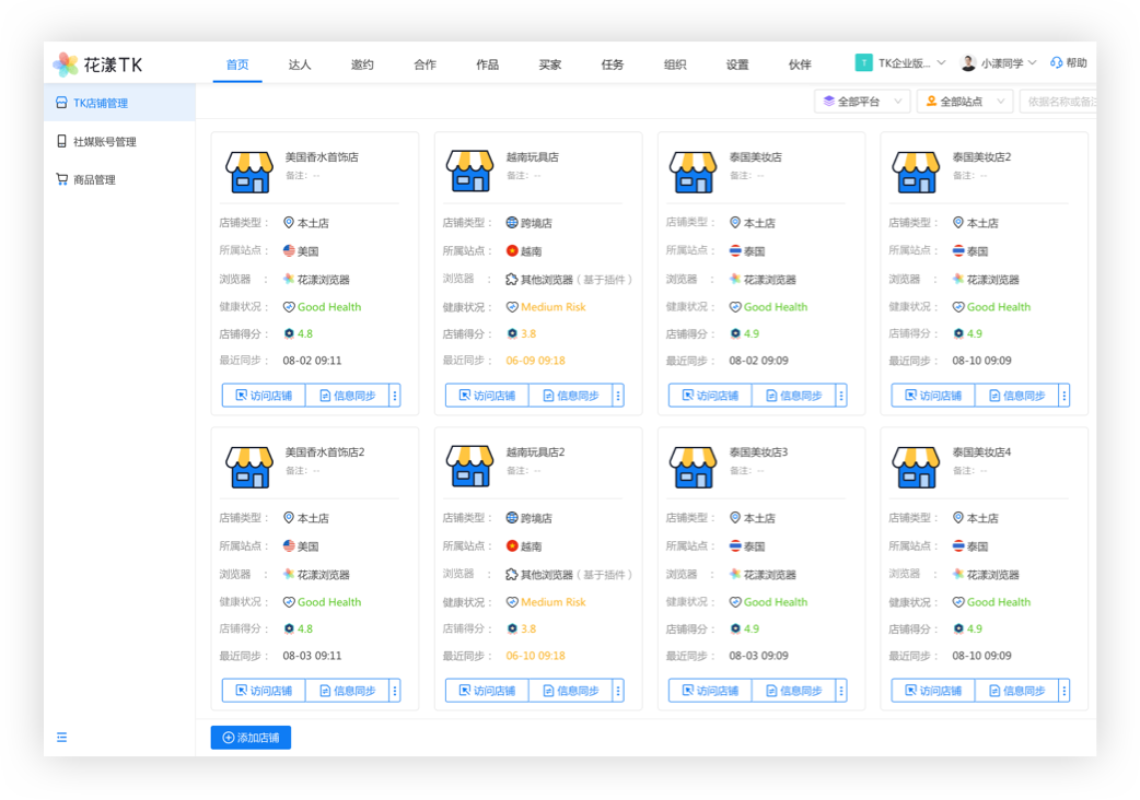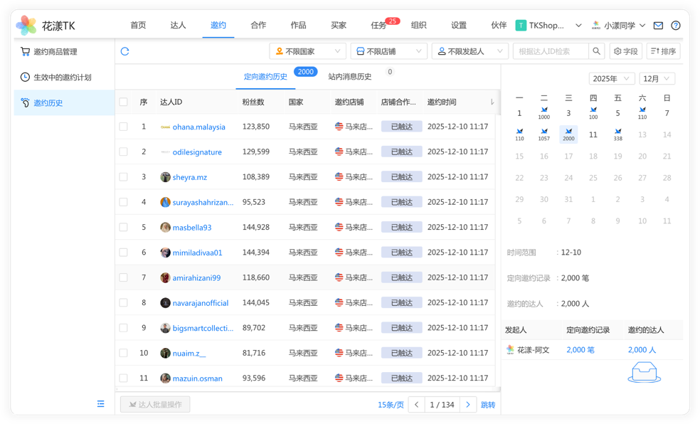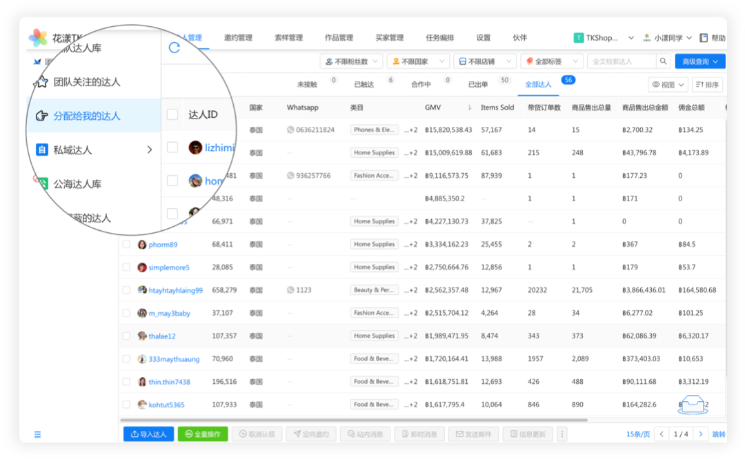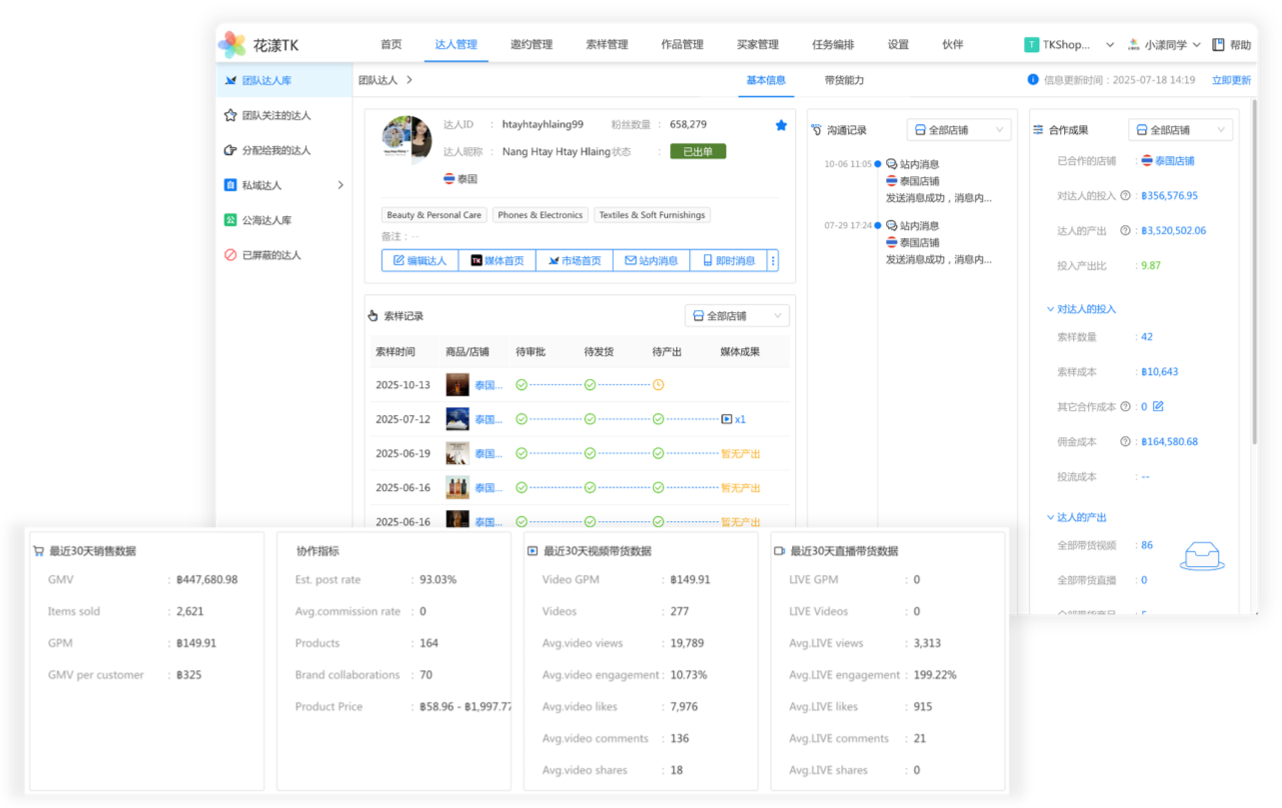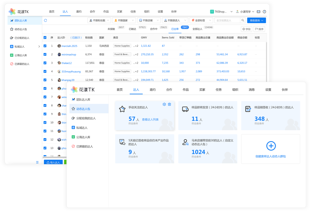 与海量达人进行自动化批量邀约建联只是花漾TK整体功能的一个很小的环节,花漾TK为您带来的是对TikTok网红流量全生命周期的管理