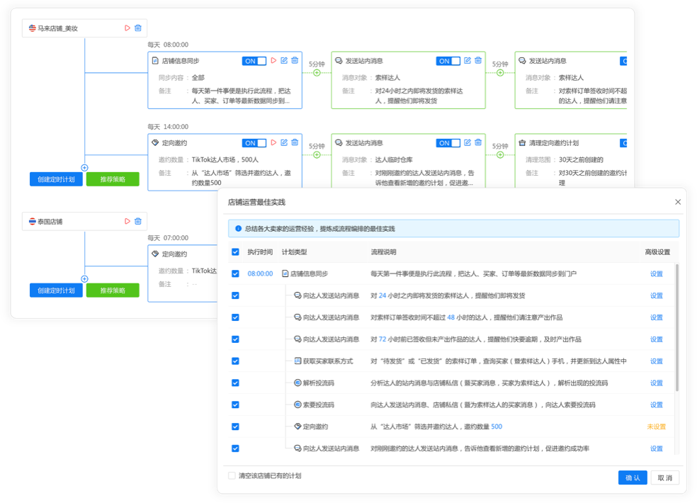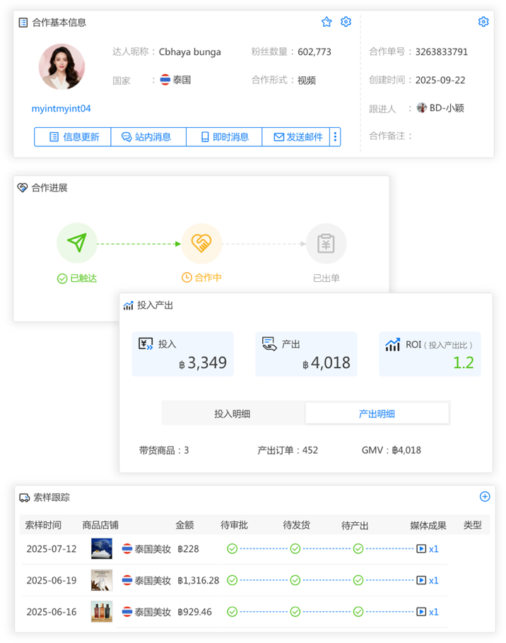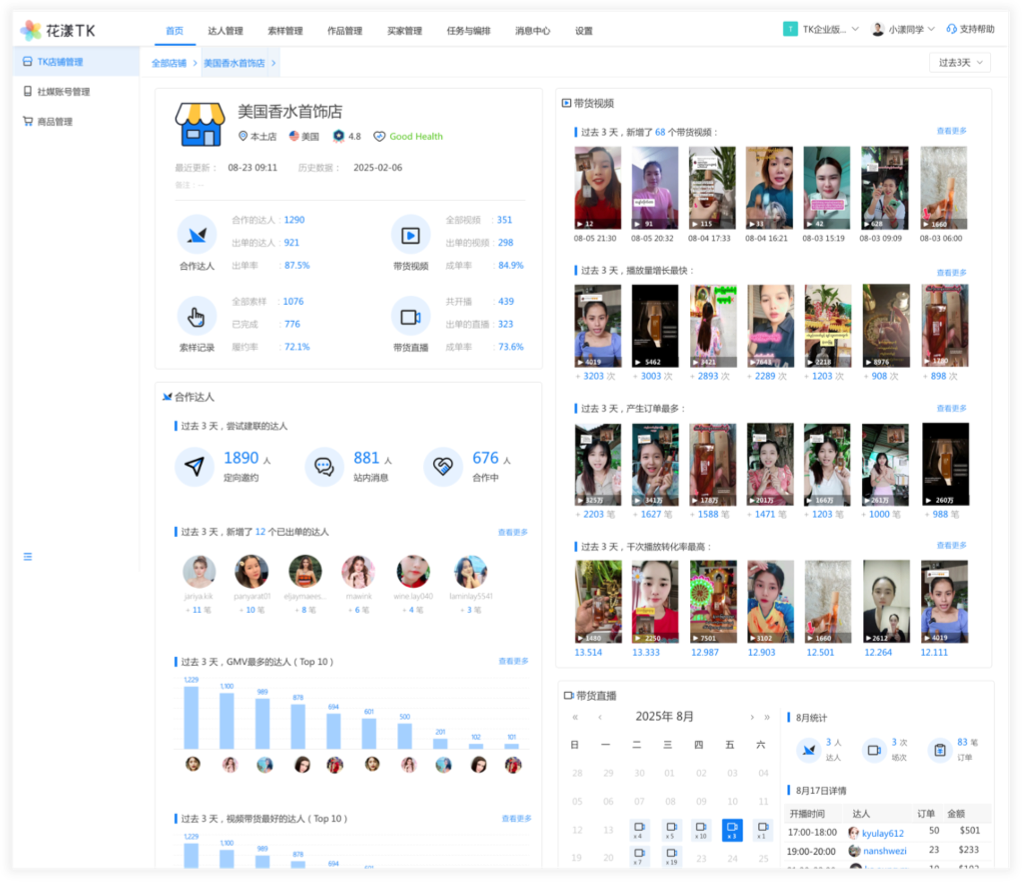 邀约只是店铺运营的一个环节,您更应该从邀约建联、素材审批、达人作品管理、广告投流与素材分析、私域沉淀、线上与线下开拓