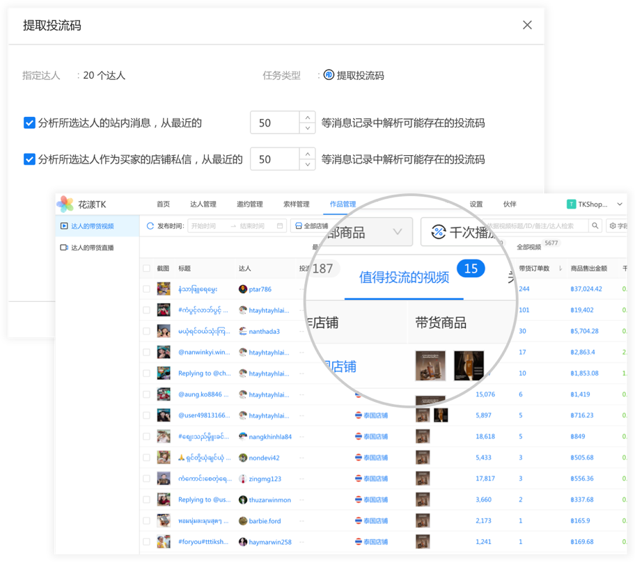 真正帮您将达人流量转化为店铺流量,这也是TikTok Shop年度GMV超千万的大卖都选择花漾TK而非其它邀约软件的原因